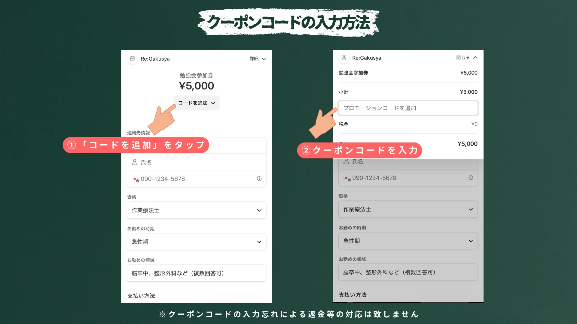クーポンの入力忘れによる差額分の返金は致しませんのご注意ください